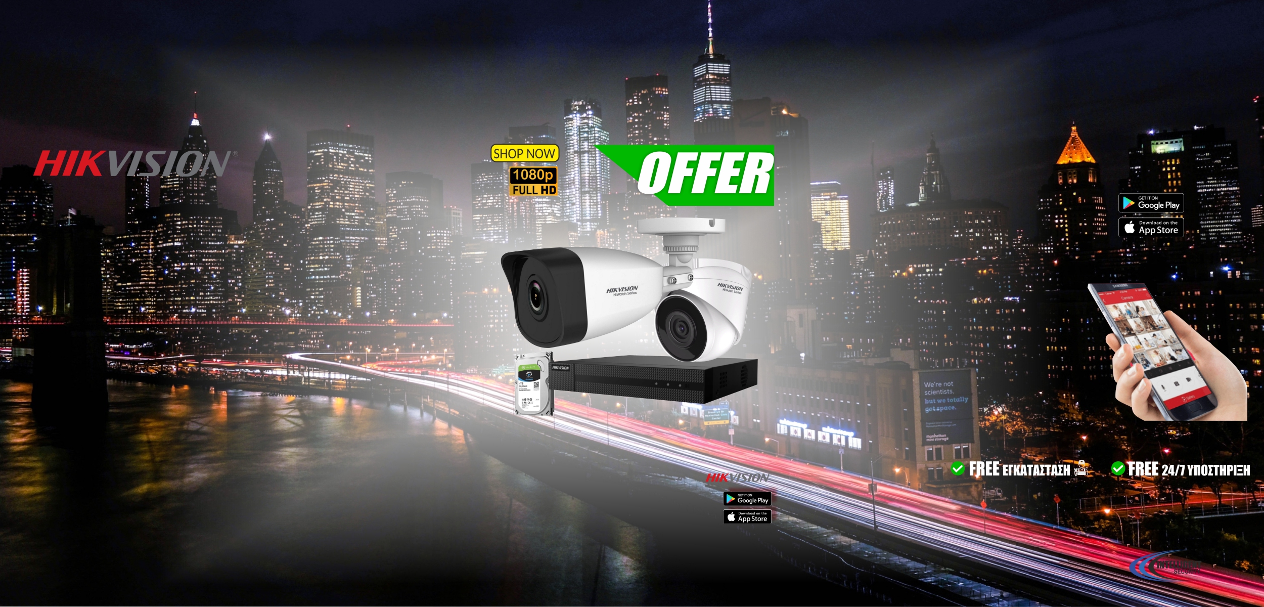 HIKVISION Δικτυακό Καταγραφικό NVR με 2 καμερες IP 2Mpixels και 1TB HDD